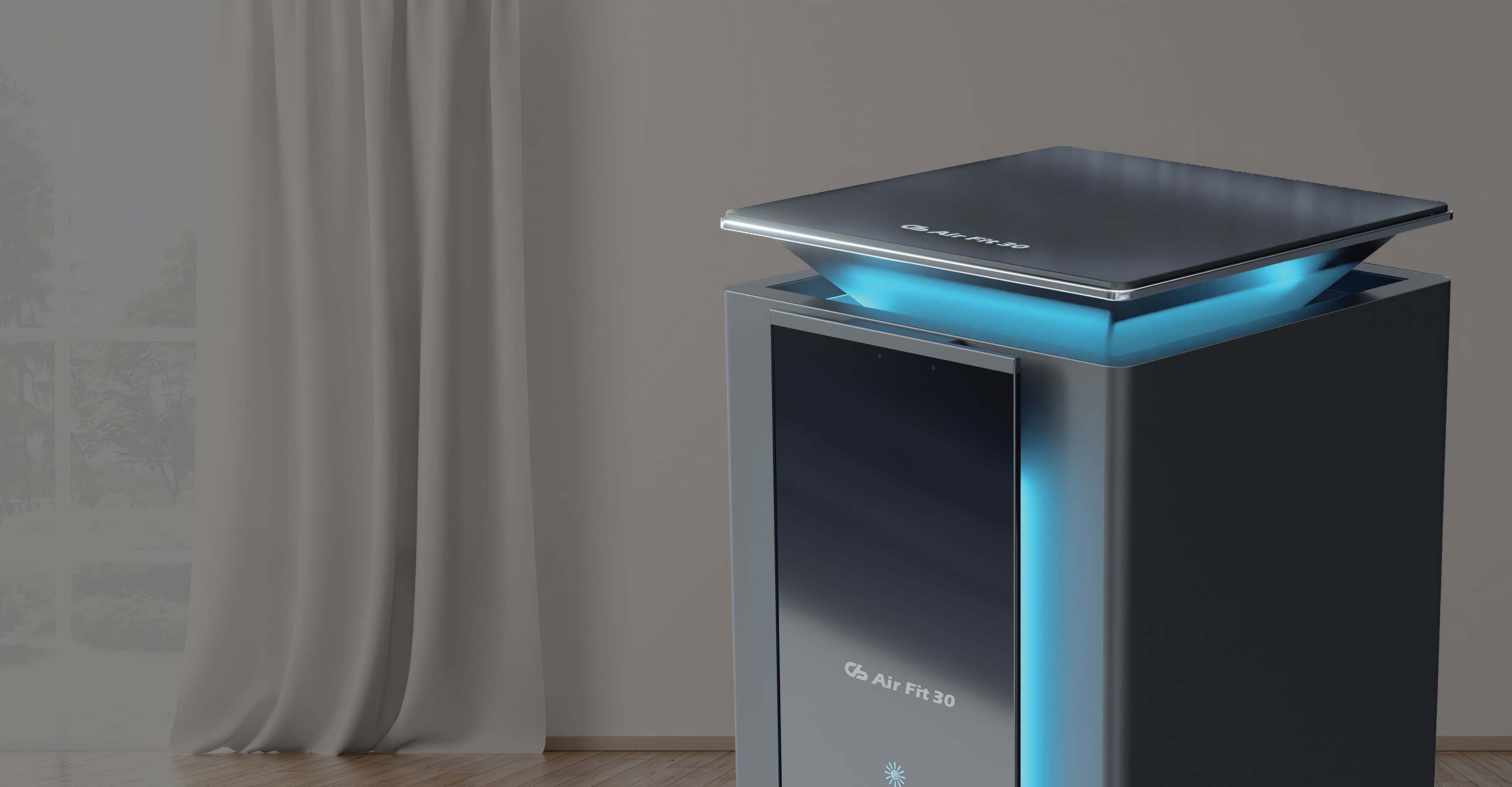 Air-Fit is an air purifier and sterilizer that uses a HEPA filter and UVC to protect against pollutants and pathogens.