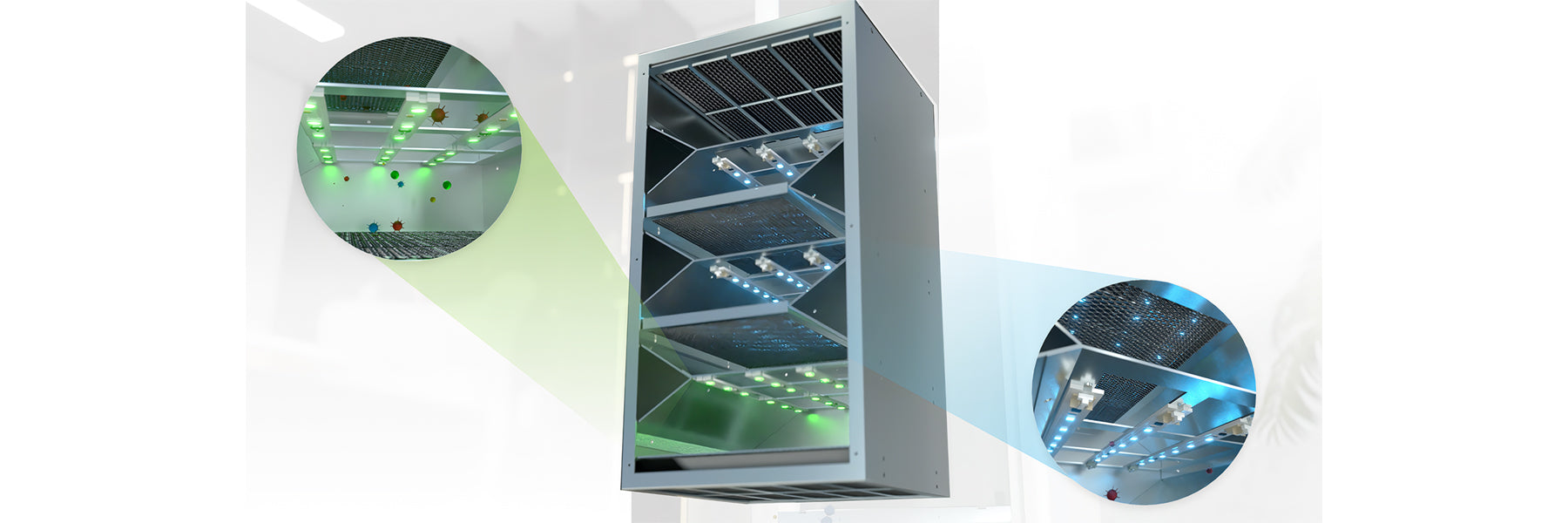 Maximum applied (UVC LED) zigzag flow path structure. It completely decomposes the pollutants in the indoor air.