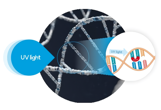UV sterilization corresponds to the 275nm wavelength region that is best absorbed by cell DNA.