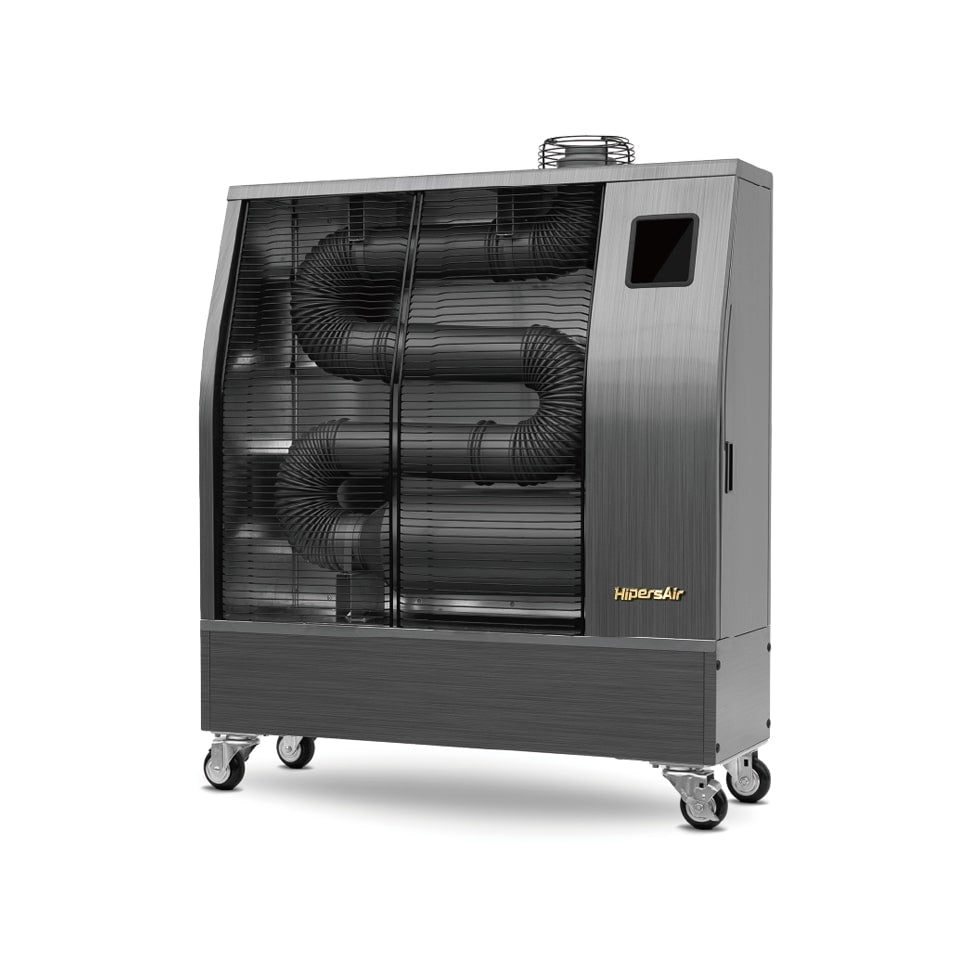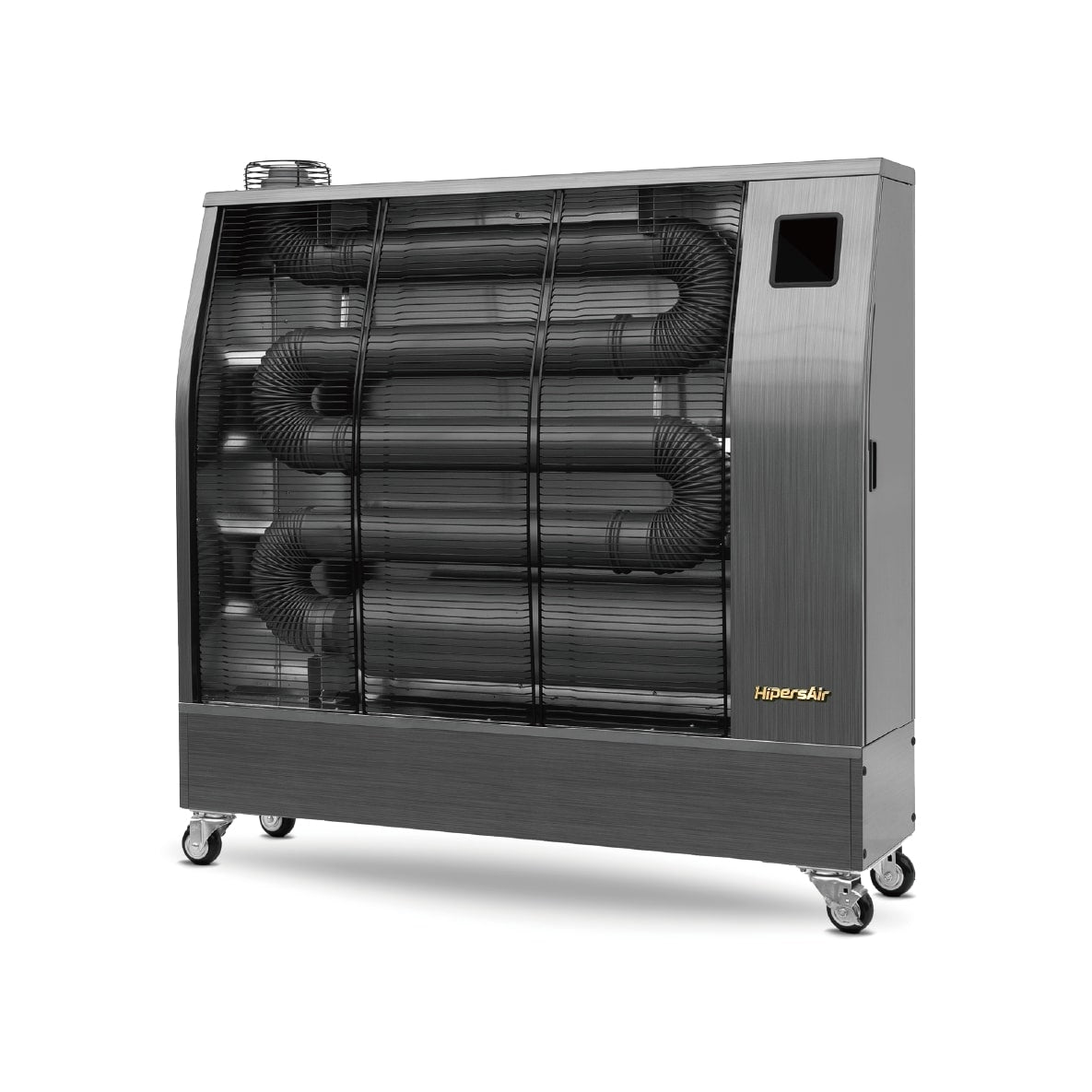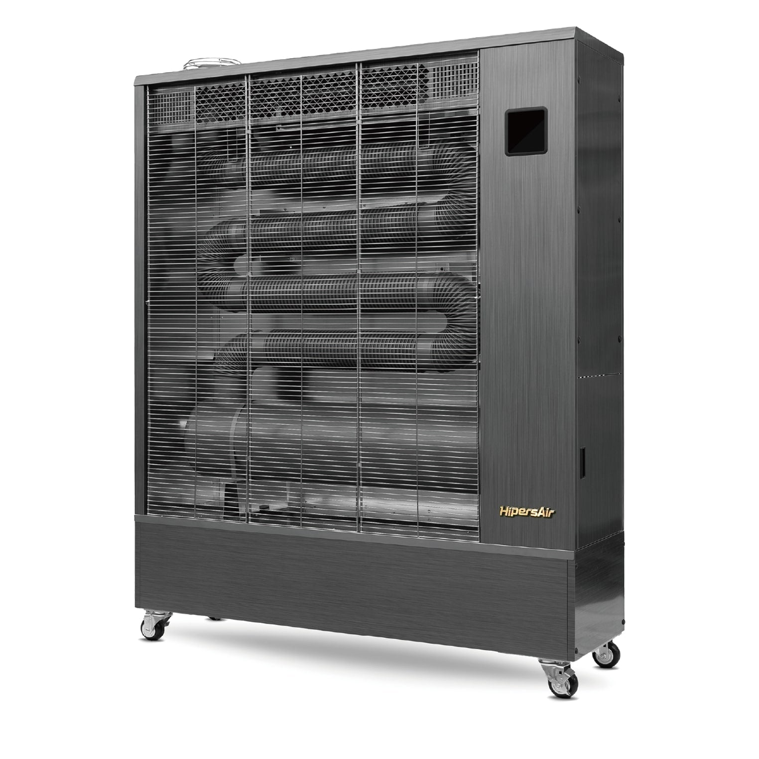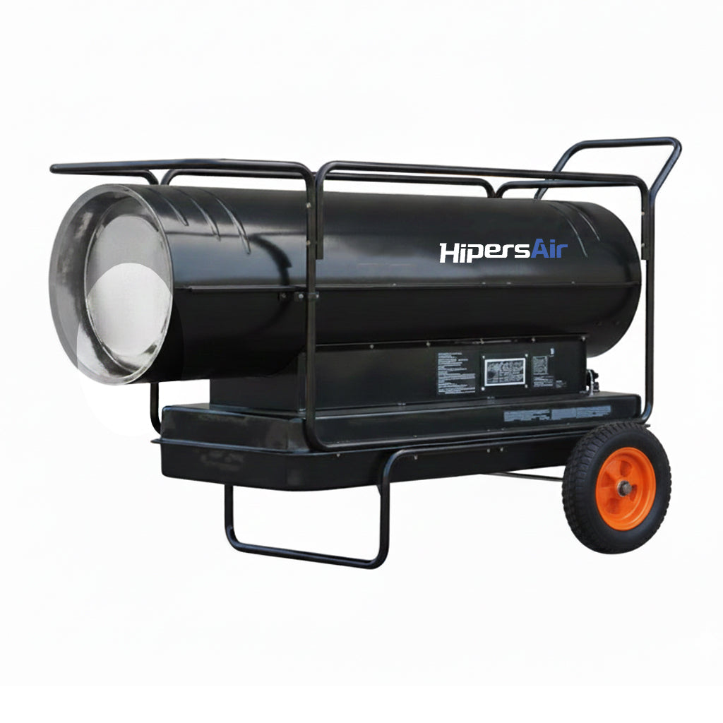 Pulls cold air in, fires it up, and blasts warm air across large spaces in minutes.